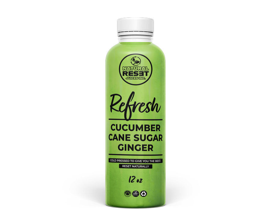 REFRESH is a clean, cool, and hydrating blend of cucumber, ginger, and a hint of natural sweetness. Light and revitalizing, this juice is perfect for cleansing, hydration, and low-calorie nourishment.